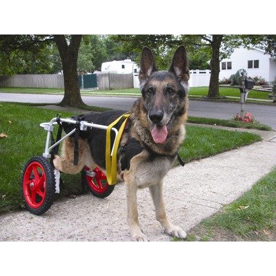 Best Friend Mobility Dog WheelchairBest Friend Mobility world class dog wheelchairs are the best quality and most affordable on the market today. With our Dog Wheelchairs, your best friend can run and play again. He or she can live a full, rich, happy life of play and exercise. If you are caring for a best friend who has mobility issues and needs a dog wheelchair for any reason, we can provide you with pet mobility solutions that fit your pet and your budget. Best Friend Mobility wheelchairs offer you and your dog amazing benefits.Best Friend Mobility pet wheelchairs were designed by an orthopedic veterinary surgeon. Our wheelchairs are indicated for a large range of mobility issues, from arthritis to spinal problems, weakness, surgery, etc. Our wheelchairs are built from hyperlight aircraft-grade aluminum, stainless steel hardware, and industrial-grade pneumatic tires for serious durability. Can be set for assisted weight bearing while your pet is recovering from surgery or trauma, or complete non-weight bearing as needed. This cart will fit 95% of dogs within the suggested weight ranges. It is not necessary to measure your dog. If your dog is between the suggested weight range, then this cart should adjust to fit. It has 2.5" high-quality polyurethane wheels, padded shoulder support, double-thronged neoprene adjustable shoulder harness, and built-in double rear adjustable padded leg harness. Both male and female dogs can still go to the bathroom comfortably in this rear harness. This cart can be used for assisted or partial weight bearing for neurological deficiency or weakness and rehabilitation of the rear legs. Also, if your dog is fully non-weight bearing on his/her rear legs, the rear leg straps would also be used. Our dog wheelchairs are for pets with normal front leg strength. Lightweight and non-corroding aluminum, very light and rugged. The cart adjusts length, width, and height with a hex wrench.This dog wheelchair is ideal for dogs with hip dysplasia, a