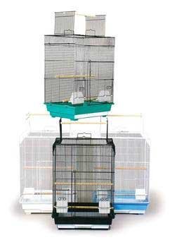 18 x 14D x 26 1/2H, 1/2 wire spacing, parakeet or Cockatiel cage with top opening playtop perch, includes 2 front access hooded cups, 3 wood perches, bottom grille and removable pull out drawer. Case pack includes. Case pack 4 each with assorted colors.