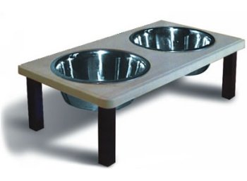 A classic double diner dish, with two stainless steel dishes. The non absorbent surface is completely water proof, odor-proof, and stain proof, and it's so easy to clean. Durable, reinforced legs are fitted with non skid bottoms. Available in 1 pint (4" tall for cats and small dogs)1 quart (6" tall) and 2 quart sizes and an adjustable height model (9"-15") in the 2 quart configuration. Available in black and oak.